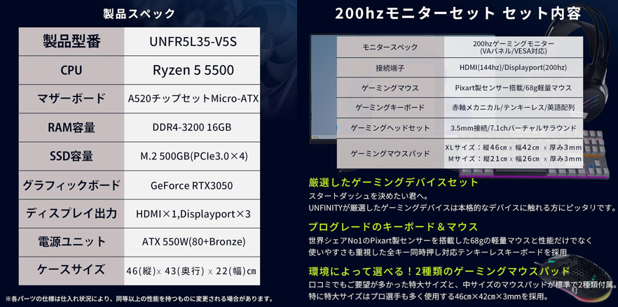 「UNFINITY 200Hzモニター & RTX3050セットは、賢い選択」です!