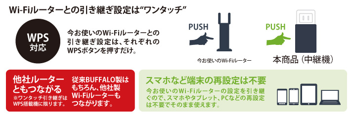 メリット①:感動するほど簡単!ボタンを押すだけのWPS設定
